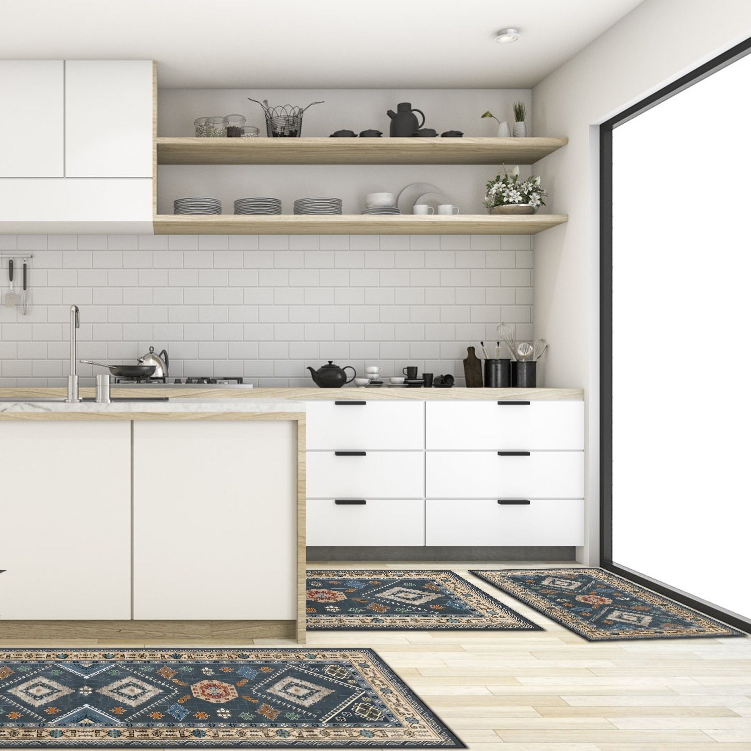 • ✅Durable & Speical Design Kitchen Mats For Floor: Our Kitchen Runner Rug Set Made Of Premium Polypropylene Fabric Material, Which Is Very Durable. Design With Rich Vintage Elements And Real Color, Adds An Elegant Touch In Any Area Of Your Home. Classic Printing And Dyeing Process, Non-Fading And Non-Shrink, Protect Your Kitchen Floor Dry And Clean From Moisture And Stain.